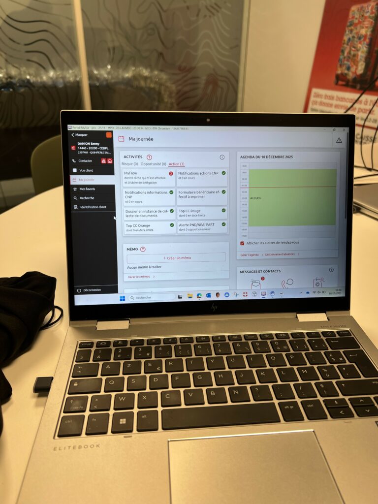 Vendredi matin, j’ai travaillé dans le bureau de Noémie. J’ai été chargée d’actualiser les fiche TOP CC (connaissance client), de contacter les clients pour lesquels certaines informations étaient manquantes et, le cas échéant, de leur proposer des rendez-vous avec leur conseiller pour le début de l’année 2026.